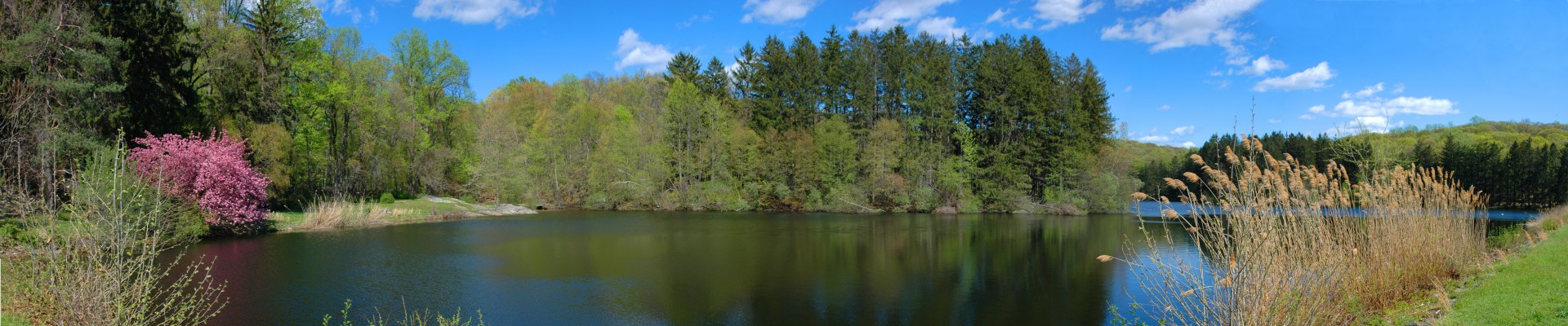 Tucked behind beautiful rhododendron bushes is a large granite rock with a plaque honoring V. Everit Macy, 1871-1930. V. E. Macy built a successful chain of newspapers in Westchester and was the first Commissioner of Public Welfare. As commissioner, he oversaw the growth of the Grasslands poorhouse complex into the first county hospital in New York, now Westchester Medical Center. While many of his countless acts of generosity went unheralded, his achievements as Superintendent of the Poor and President of the Westchester County Park Commission were widely known. David Rockefeller, Jr. called him “the kindest man I ever knew.” A portion of the 172-acre Macy Park, bisected by the Saw River Parkway and NY State Thruway, lies within the trailway system.